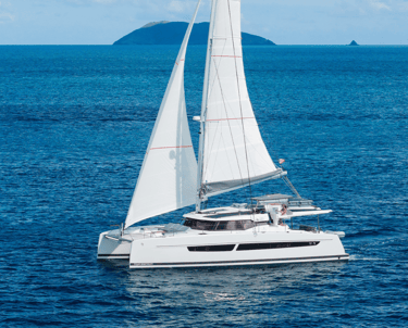 El Catamarán AURA PAJOT 51 es una embarcación diseñada para aquellos que buscan una experiencia de navegación excepcional y cómoda. Con su diseño espacioso y elegante, este catamarán es ideal para explorar las aguas de Ibiza y disfrutar de la vida en el mar. Posibilidad de Catering a bordo.