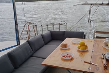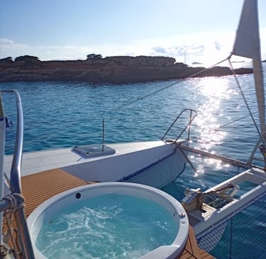 Disfruta de este maravilloso catamarán con jacuzzi y sistema de sonido para pasar un buen rato con amigos y familiares.