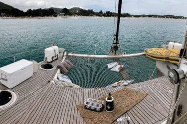 En la proa, el Beliz ofrece un área de solárium perfecta para tomar el sol o descansar mientras se navega. Además, cuenta con una espaciosa bañera en popa con asientos y mesa al aire libre, ideal para cenas y momentos de convivencia al atardecer, todo en un ambiente relajado y rodeado de mar.Rendimiento Estable y Seguro