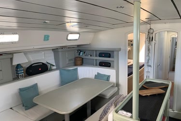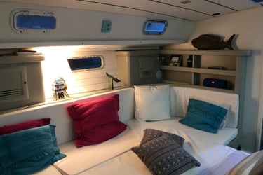 Totalmente equipado para tu comodidad, cuenta con cocina, salón, y baños bien diseñados, permitiéndote disfrutar de largas jornadas en el mar como si estuvieras en casa.