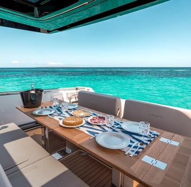 Su cubierta maximiza el espacio al aire libre, con áreas para tomar el sol, un comedor al aire libre y un diseño ergonómico que garantiza comodidad y libertad de movimiento para todos a bordo.